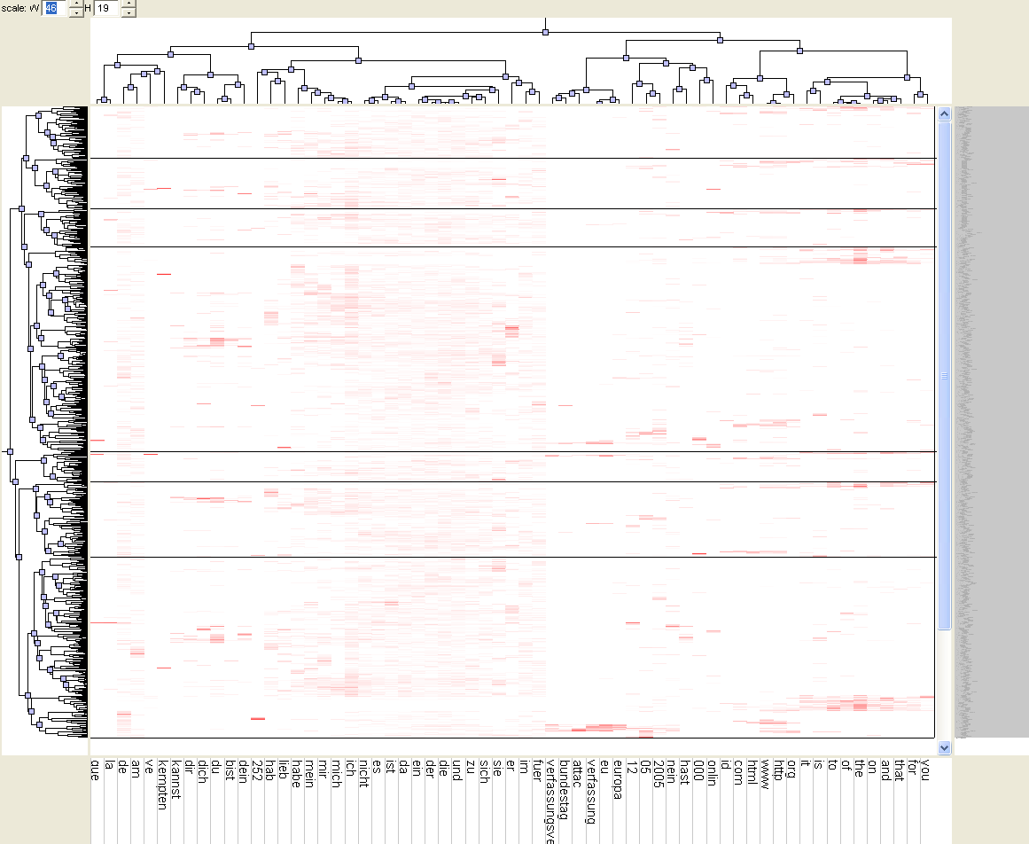 A SOM calculated on the twoday-survey data, with a 4x4 grid, and pre-ordered columns: